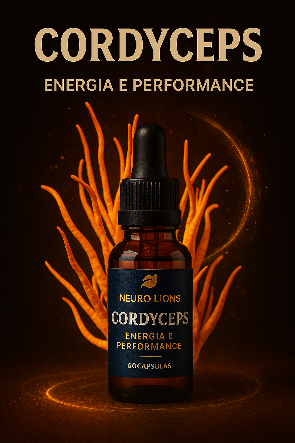 Fungo medicinal tradicional que aumenta a produção de ATP, melhorando a energia celular, resistência física e performance mental para enfrentar desafios diários.